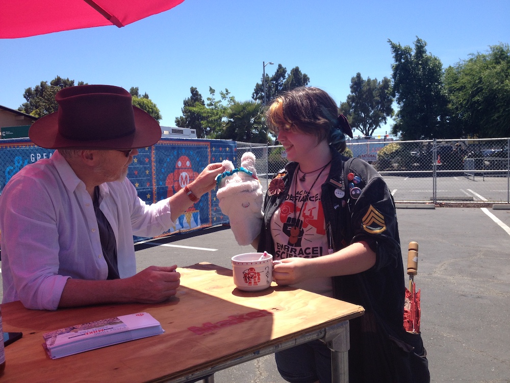 While we walked by the stage on our way out of the dark room, we heard the singer shouting “who here identifies as trans or queer!” And of course we whooped loudly. That is something I was a little concerned / curious about Maker Faire this year - how queer friendly would it be? Generally, of course, these are progressive people, and I had seen plenty of your standard quirky weirdos in past years, but I didn't trust barely out kid me to be a good judge on whether a space felt truly comfortable.