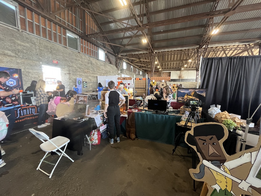 We got there around 9am with an hour to setup. Luckily, we don’t have anything too large. Unluckily, only 2 of our 5 person team knew the tech setup, and in a hurry to leave the day before our cords were less than organized. So, there was some holdback as we waited for instructions to get our monitors in place. But we had everything mostly set up by the gates opening at 10, and fully set up by the time people started wandering by our table 20 minutes later.