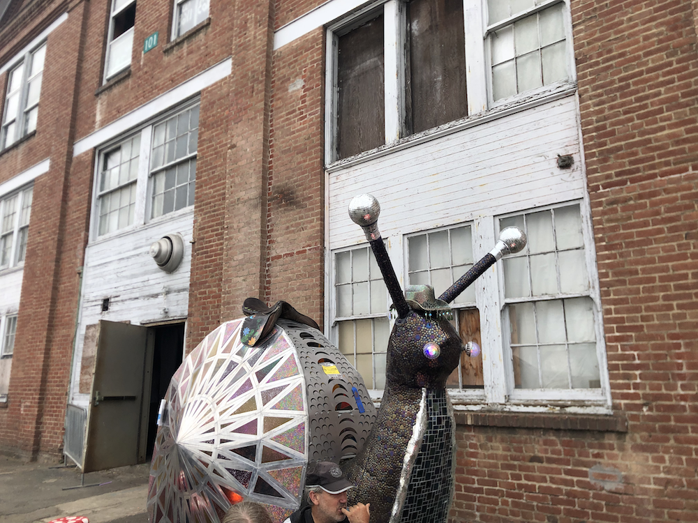 We waved to the dalek guy, which was very lovely to feel like there were lasting connections made beyond small talk. We talked to a woman helping her son run his booth about fringe theater and puppetry, a woman selling upcycled fabric was excited to talk about sewing outreach and efforts to minimize fabric waste, and we talked to many people about Fogtown as well. I was absolutely mesmerized by a booth with ooblek dancing around using the vibration from sets of speakers. It was like a little alien creature.